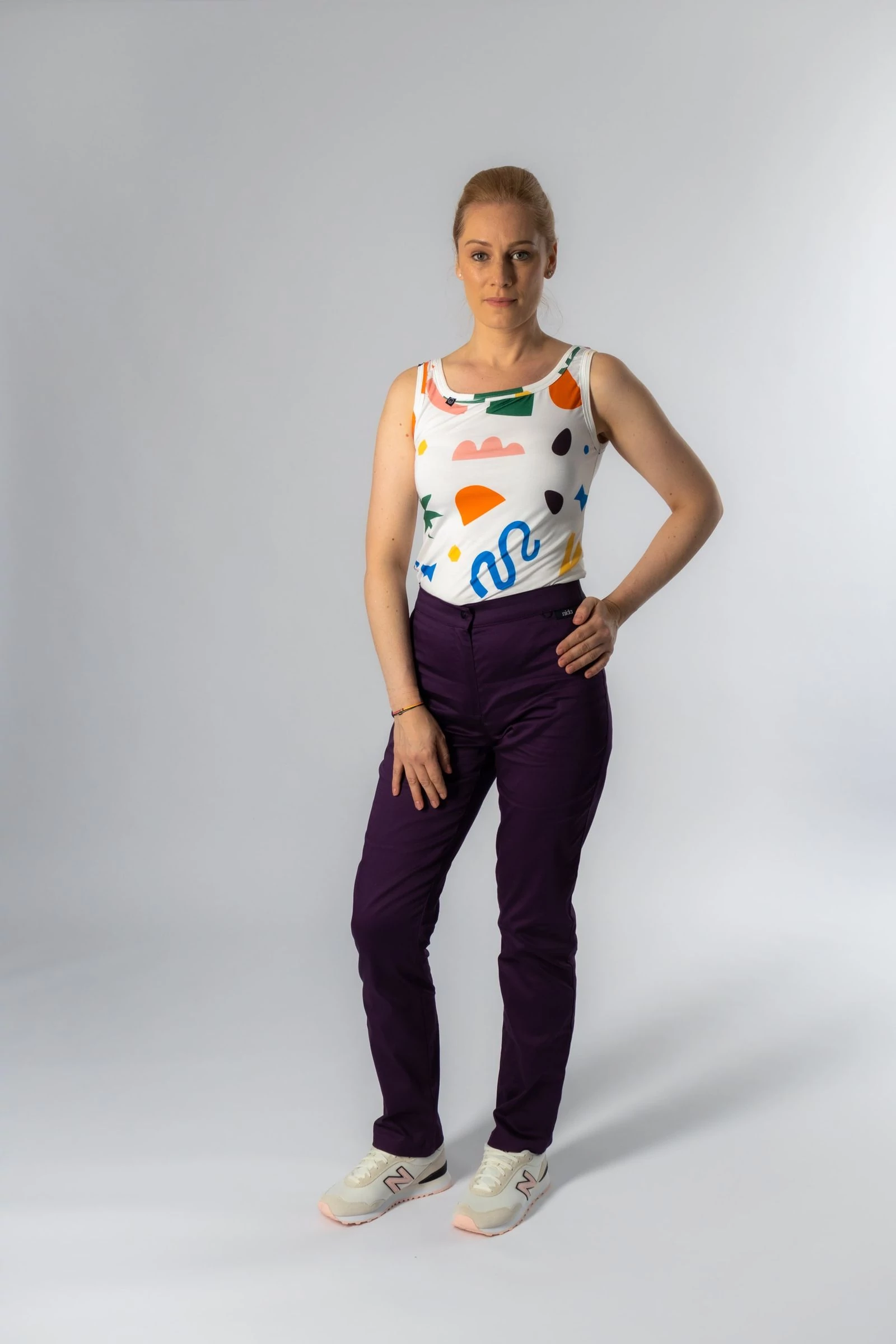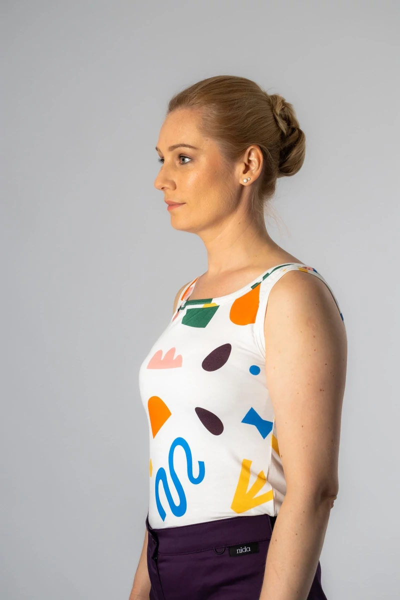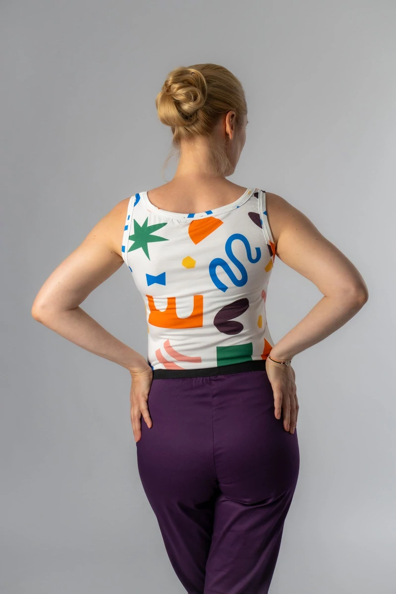 Az ALLIS ujjatlan női orvosi trikó tökéletes választás a meleg napokra vagy réteges öltözködéshez. Különlegességét a prémium olasz viszkóz jersey alapanyag adja, amely kellemesen rugalmas, légáteresztő és finoman követi a test vonalát. Digitálisan nyomott, látványos mintája vidámságot visz a mindennapokba, miközben kifinomult megjelenést biztosít – akár a rendelőn kívül is.