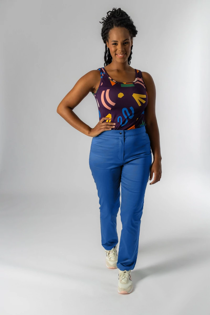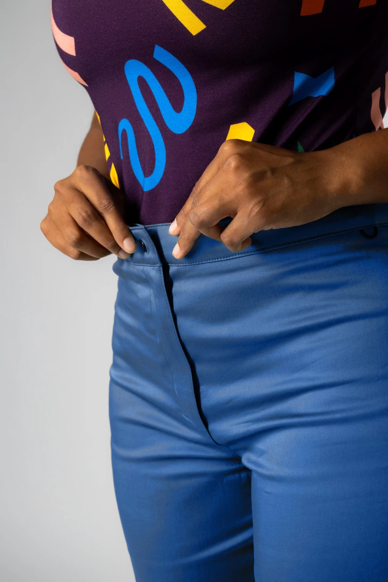 A JANNAH nadrág kényelmes és stílusos megoldás a mindennapokra. Elöl cipzárral és patenttal záródik, hátul pedig rugalmas gumírozás gondoskodik a megfelelő illeszkedésről. A derékrészen kialakított kártyatartó fül praktikus segítség, hogy a belépőkártya mindig kéznél legyen.