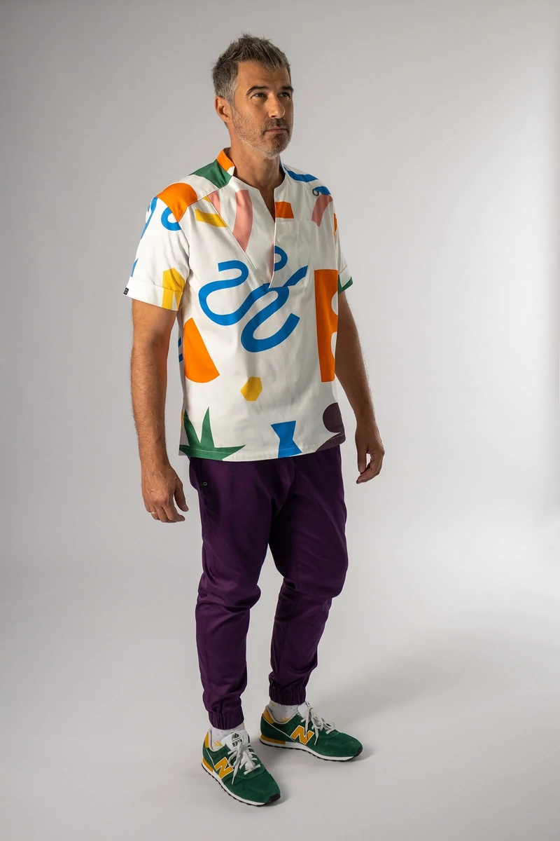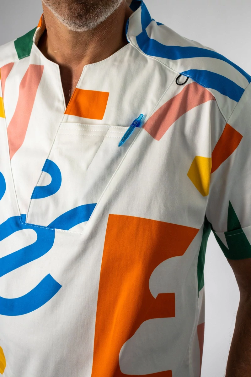 A KEN rövid ujjú, álló galléros orvosi felső modern és kényelmes. Különleges nyakkialakítása elegáns, mégis sportosan laza hatást kelt, a gallérba rejtett tolltartó pedig praktikus egyben diszkrét megoldás.