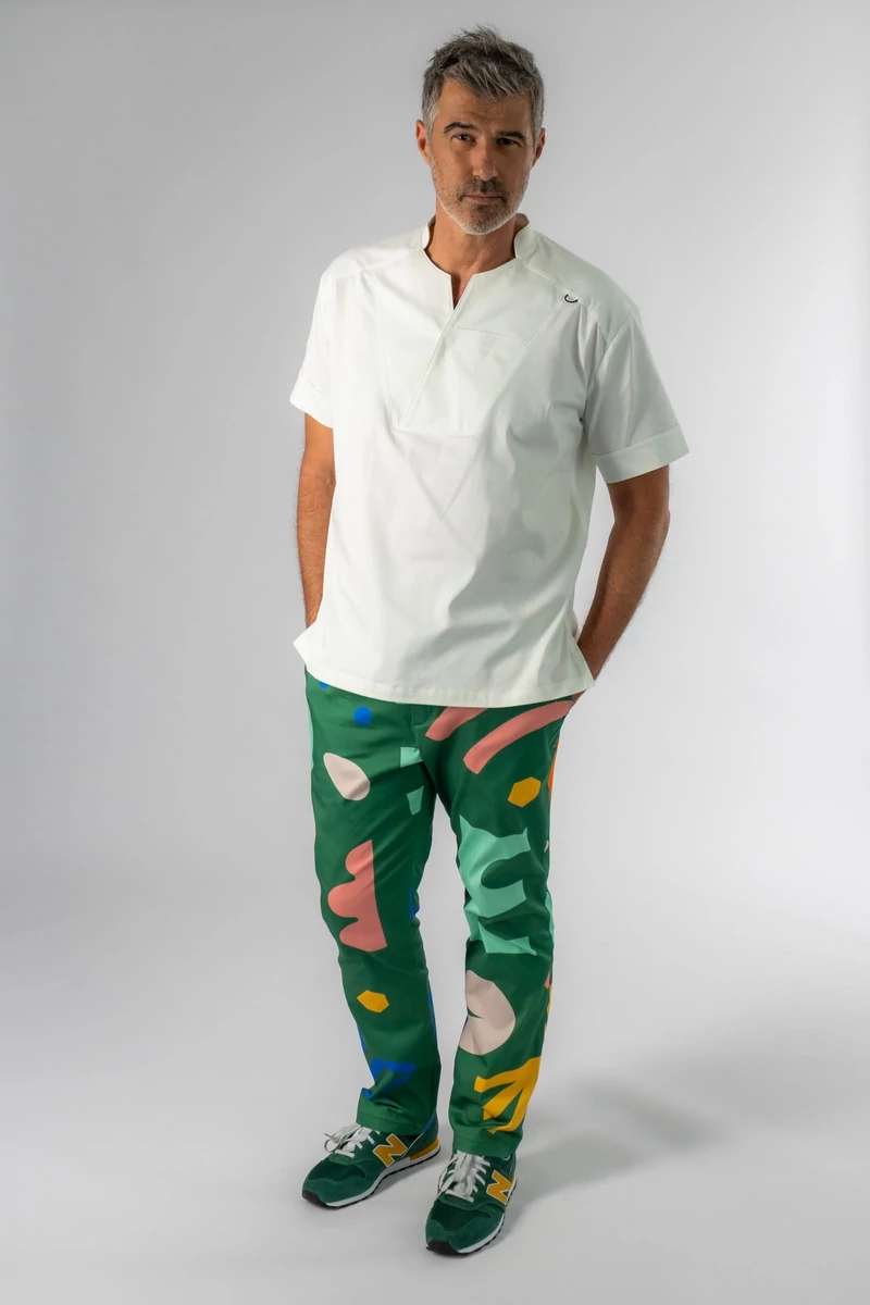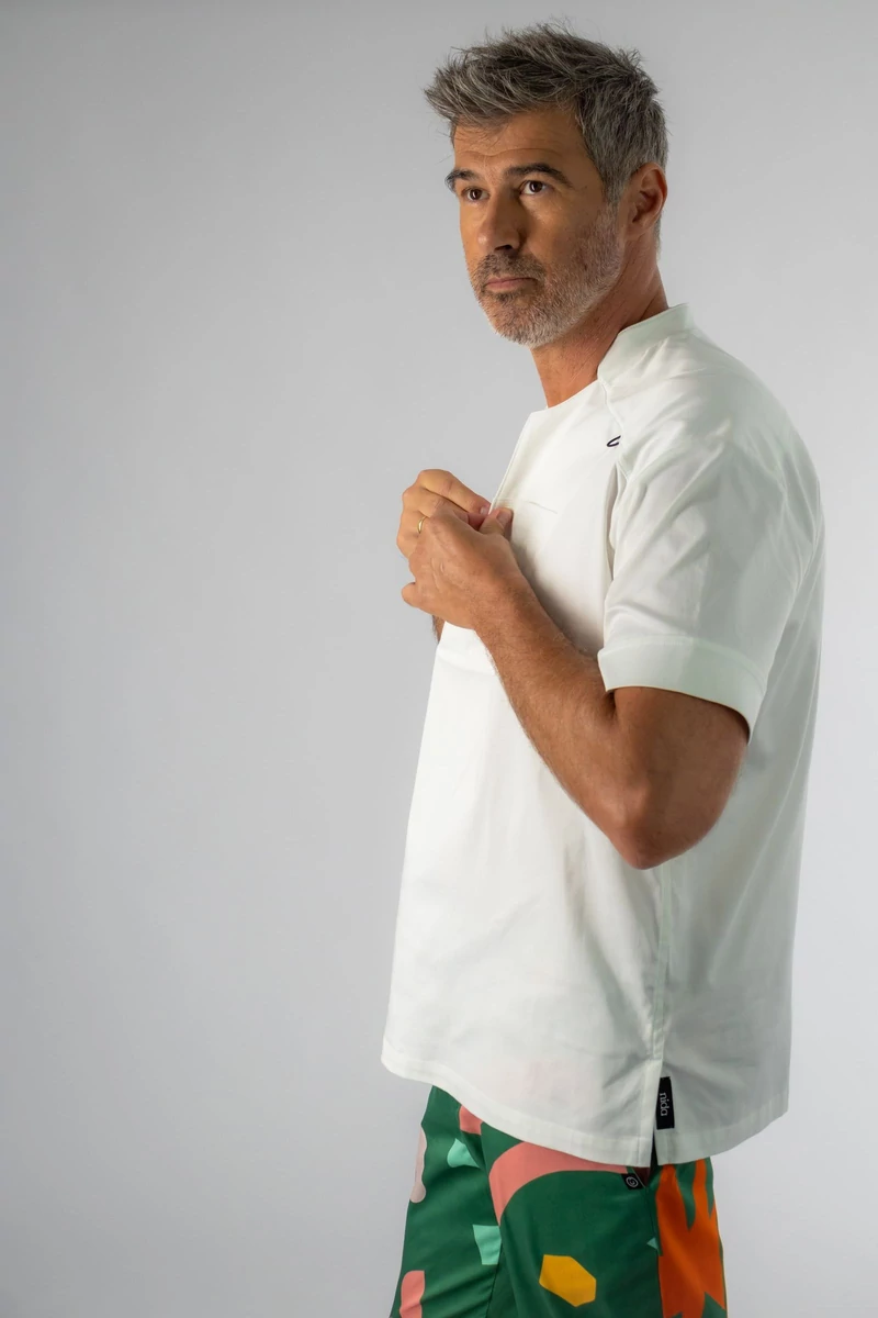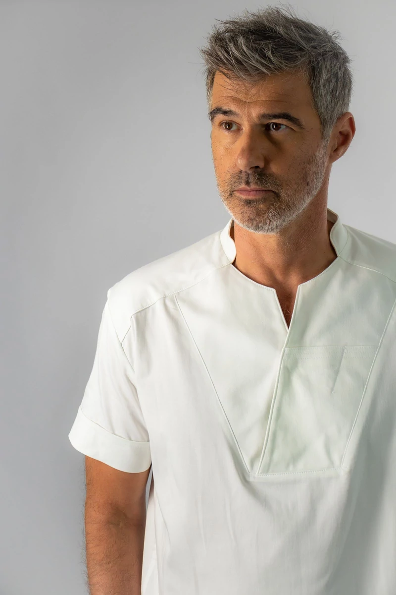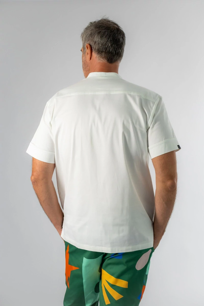 A KEN rövid ujjú, álló galléros orvosi felső modern és kényelmes. Különleges nyakkialakítása elegáns, mégis sportosan laza hatást kelt, a gallérba rejtett tolltartó pedig praktikus egyben diszkrét megoldás.