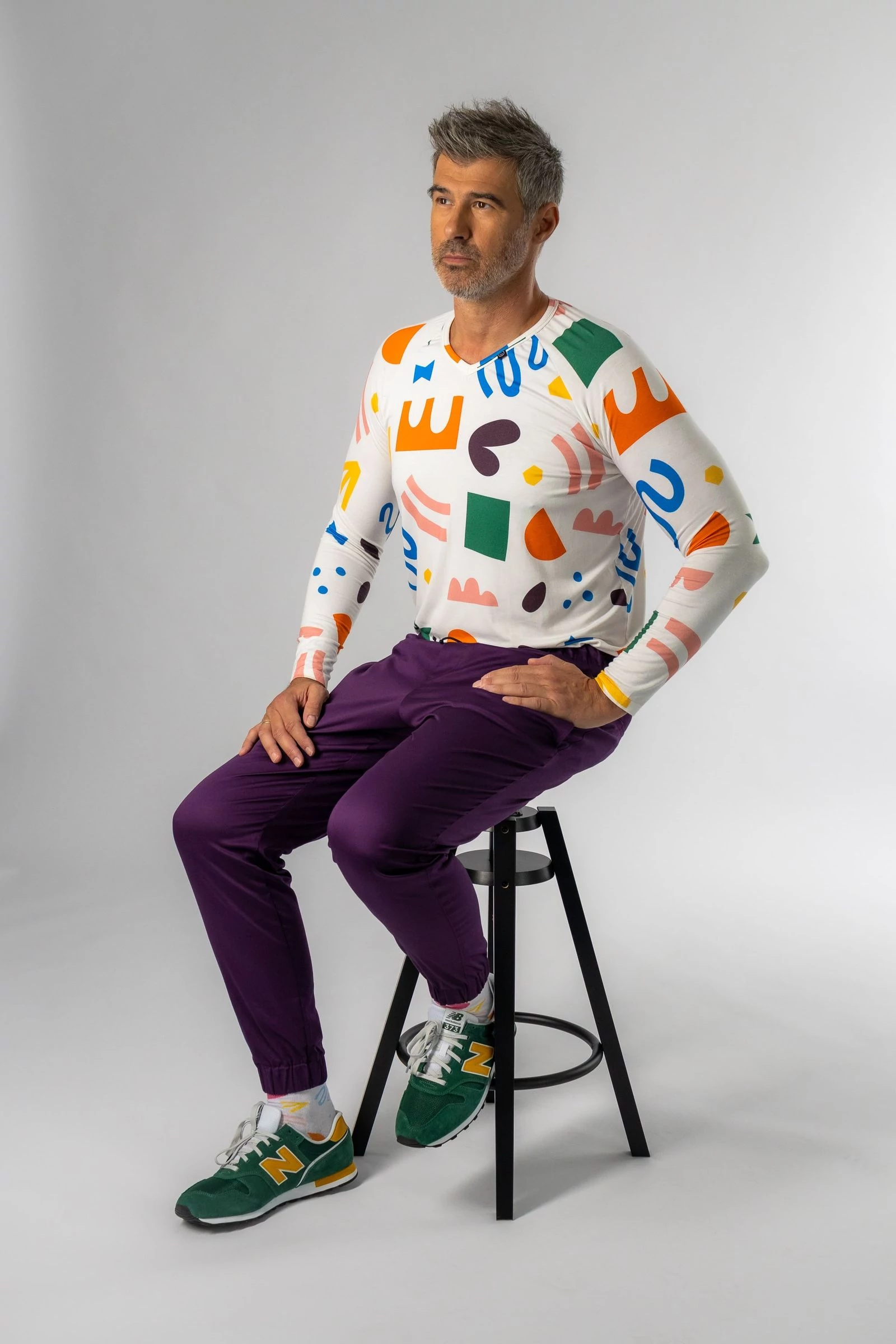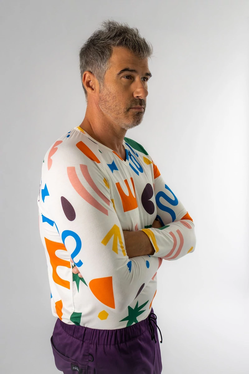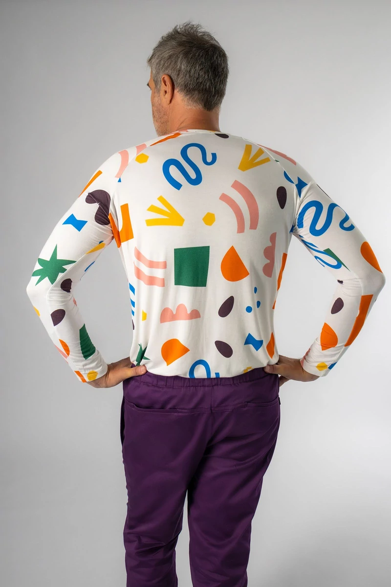 A VADE hosszú ujjú férfi orvosi póló tökéletes választás, ha egy puha, rugalmas és légáteresztő alsó réteget keresel a köpeny alá. V nyakkivágása letisztult megjelenést biztosít, míg a digitálisan nyomott, egyedi minta diszkrét karaktert visz a hétköznapi viseletbe.